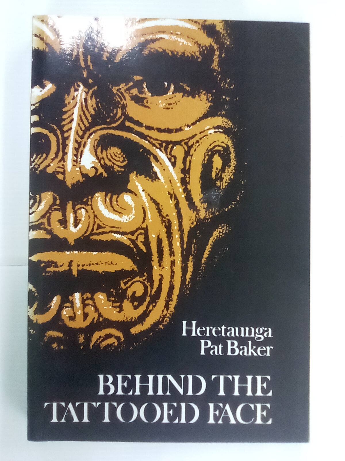 This is a second-hand copy of the book Behind the Tattooed Face by Heretaunga Pat Baker.